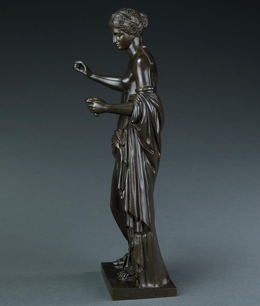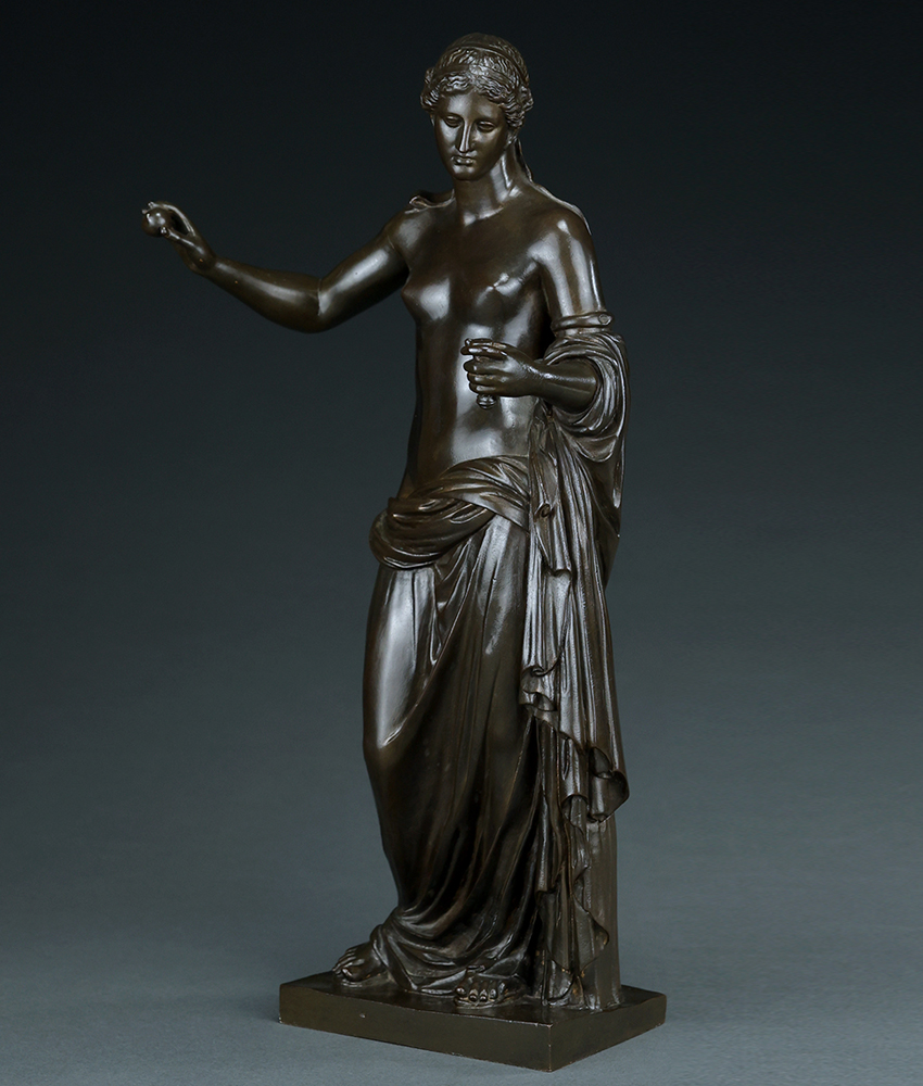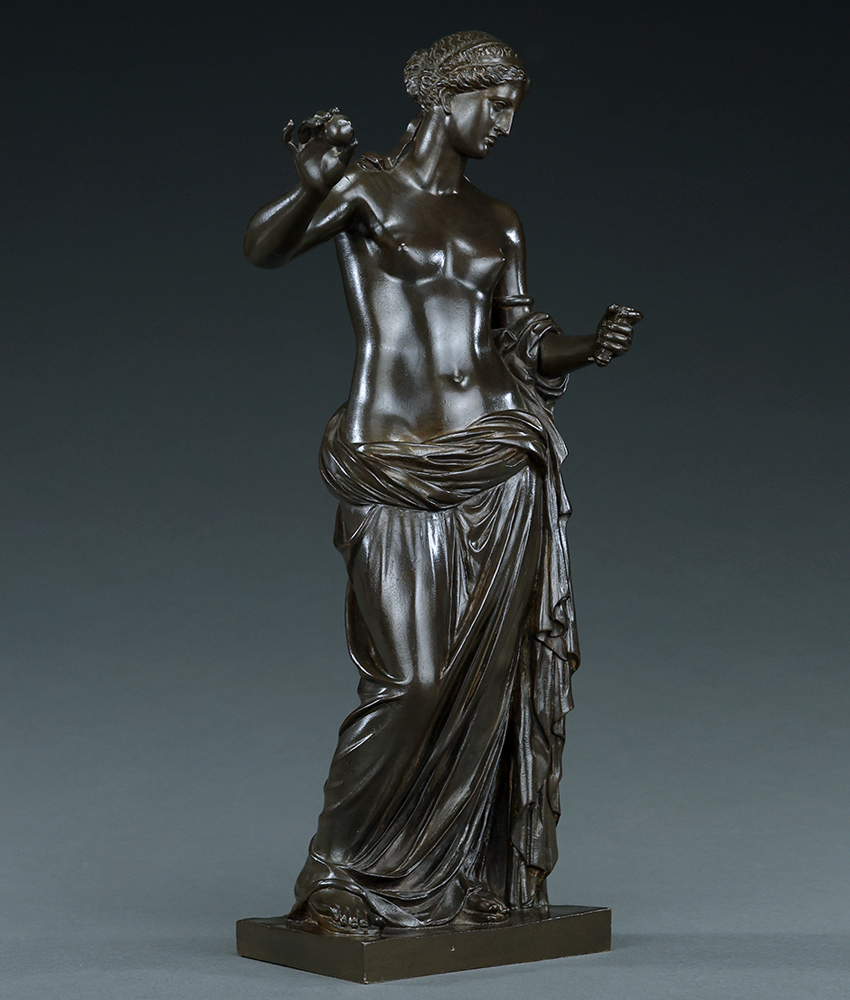 Rare good size 19th century patinated bronze full length library statue of the 'Vénus d'Arles' after the antique original found in 1651 in the Roman Theatre in Arles and now housed in the Louvre in Paris. Fine quality casting in the manner of Barbedienne with the Reduction Merchanique seal of Achille Collas. French, circa 1890.
