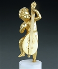 Delightful pair of fine quality classically inspired 19th century, probably French, gilt bronze ormolu putti dancing a bacchanal on white marble columns. Possibly a matched pair, well cast and chased.