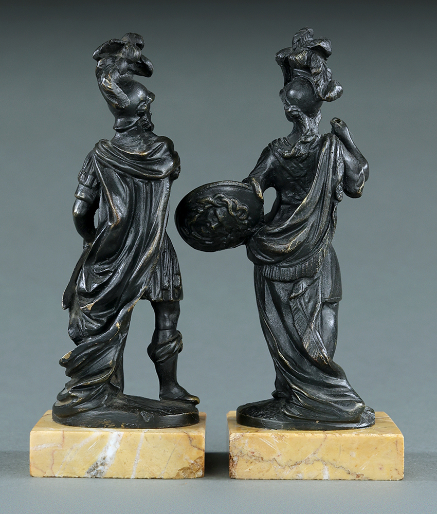 Late 18thC pair of Mars and Minerva cabinet bronzes