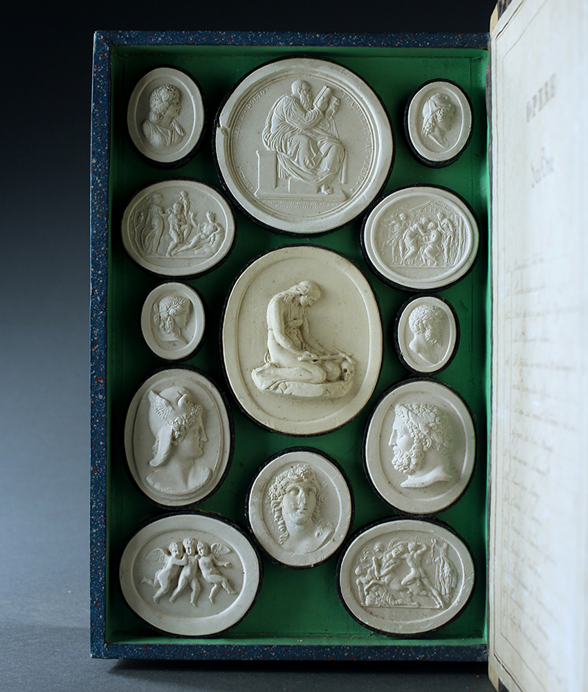 Fascinating 19th century Grand Tour collection of intaglios contained in a double sided Liberotti Impronte Musei 5 Opere book probably by Paoletti. Beautiful collection of intaglios with fine examples of important works of art from the museums and religious sights of Rome. With their minature renditions from antiquity these beautiful collections are an absolute must for all serious collectors of Grand Tour. Italy, circa 1850.