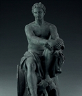 Stunning, rare, 19th century Grand Tour Italian patinated bronze of the Ludovisi Mars a 2nd century Roman marble sculpture after a late 4th-century BC Greek original of Ares the Greek god of war seated on a trophy of arms with a young Eros playing at his feet. Discovered in 1622 near the Palazzo Santa Croce, the sculpture was thought originally been part of a temple dedicated to Mars and became part of the collection of Cardinal Ludovisi (1595-1632). One of the highlights of the Grand Tour it is now on permanent display in the Museo Nazionale Romano in Rome. The 18th century connoisseur Johann Joachim Winckelmann, described the statue as 'the most beautiful Mars that had been preserved from Antiquity'. Finely cast with a beautiful deep patination from many untouched years, matt verdigris, almost, archaeological finish. Presented on a green Levanto marble base. Italy, probably Rome, circa 1850.