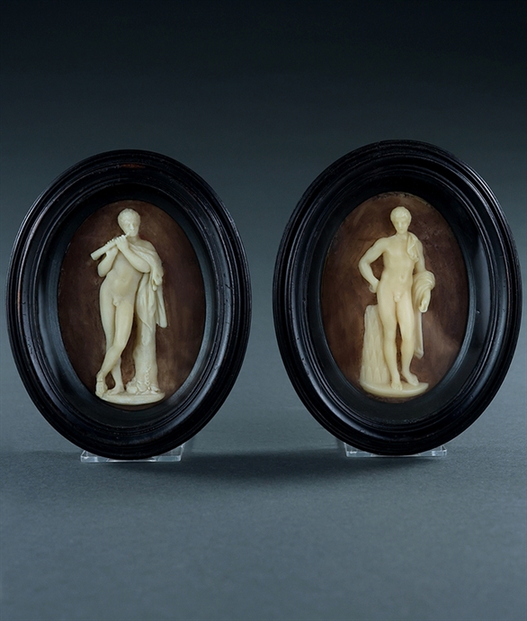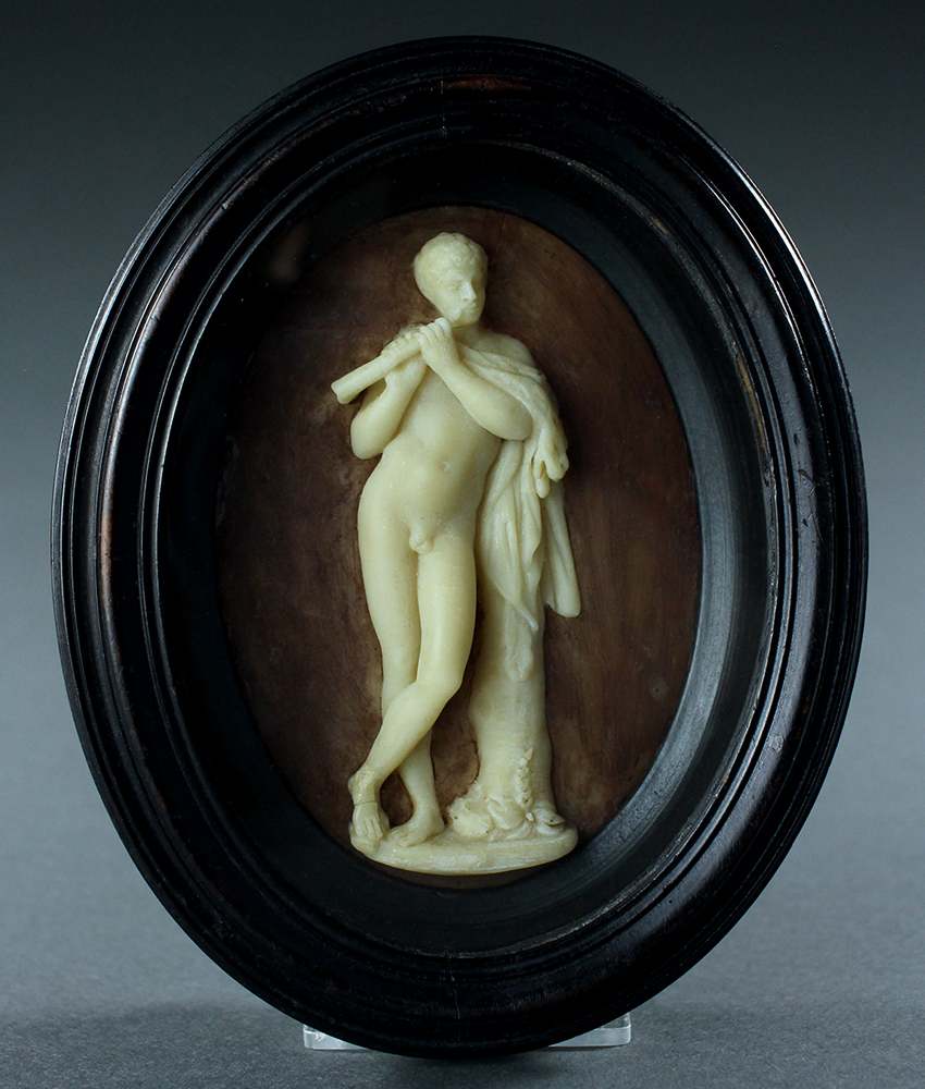 Rare pair 18thC Wax plaques of Antinous and the Satyr Marsyas attributed to Lochée