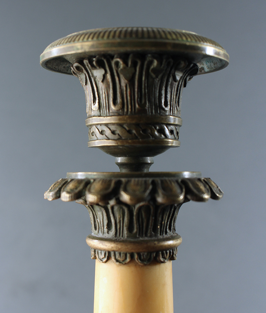 CA0364 Pair of early 19th century bronze and marble candlesticks